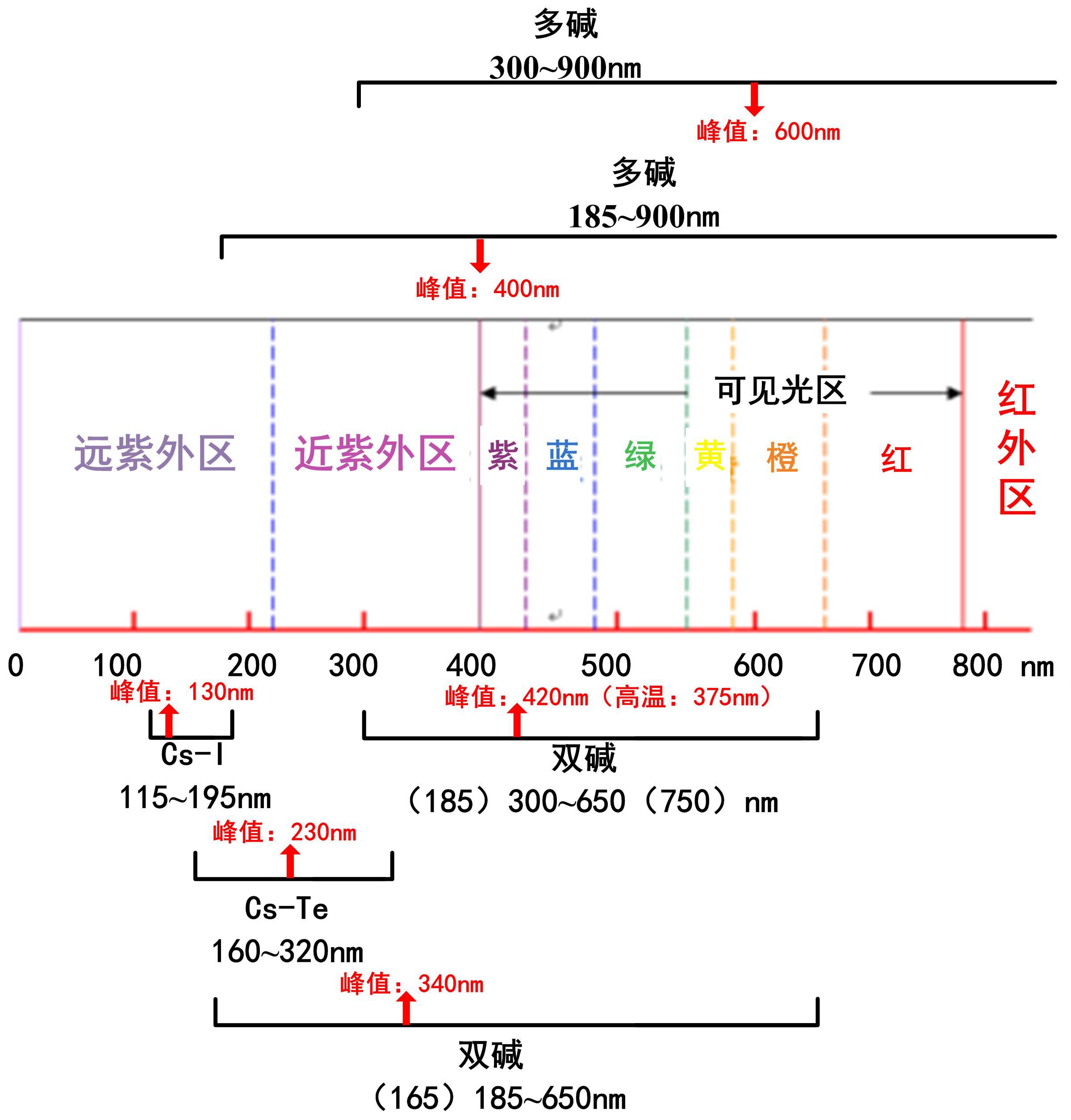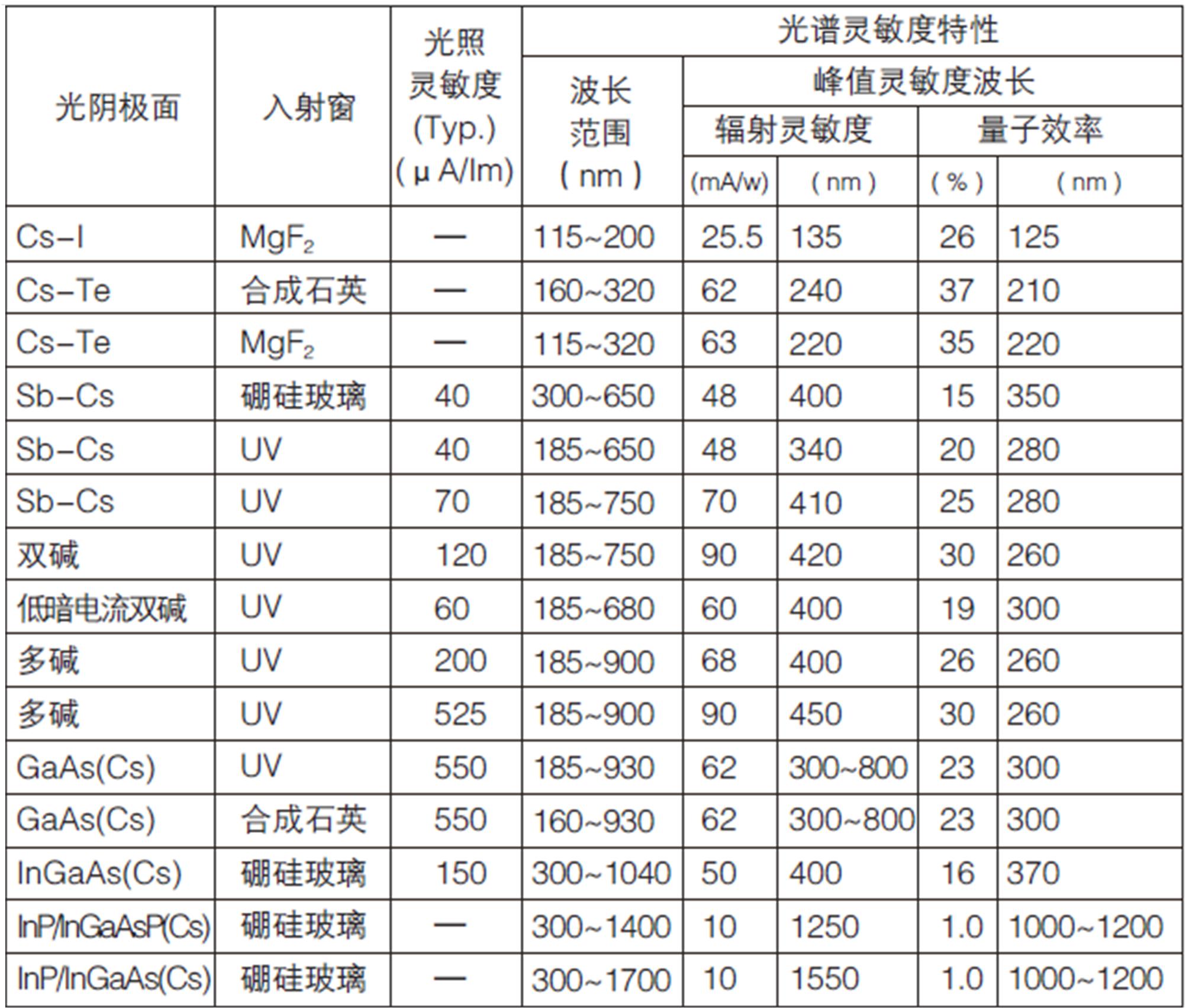 圖1 常見PMT響應范圍