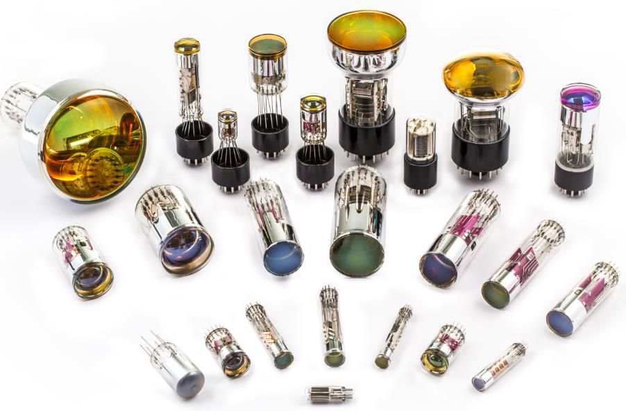 光電倍增管(Photomultiplier Tube,簡稱PMT)是一種真空玻璃器件,可將光信號轉(zhuǎn)化為電信號,因超高靈敏度和快速響應等特點備受關注。在檢測光譜方面,其可探測約100nm~1μm范圍內(nèi)的光信號。此外,在更短波方向,如γ射線、X射線探測使用的輻射探測器,以通過各種閃爍體轉(zhuǎn)化成可見光,然后再通過PMT進行檢測,其關鍵器件也是PMT。