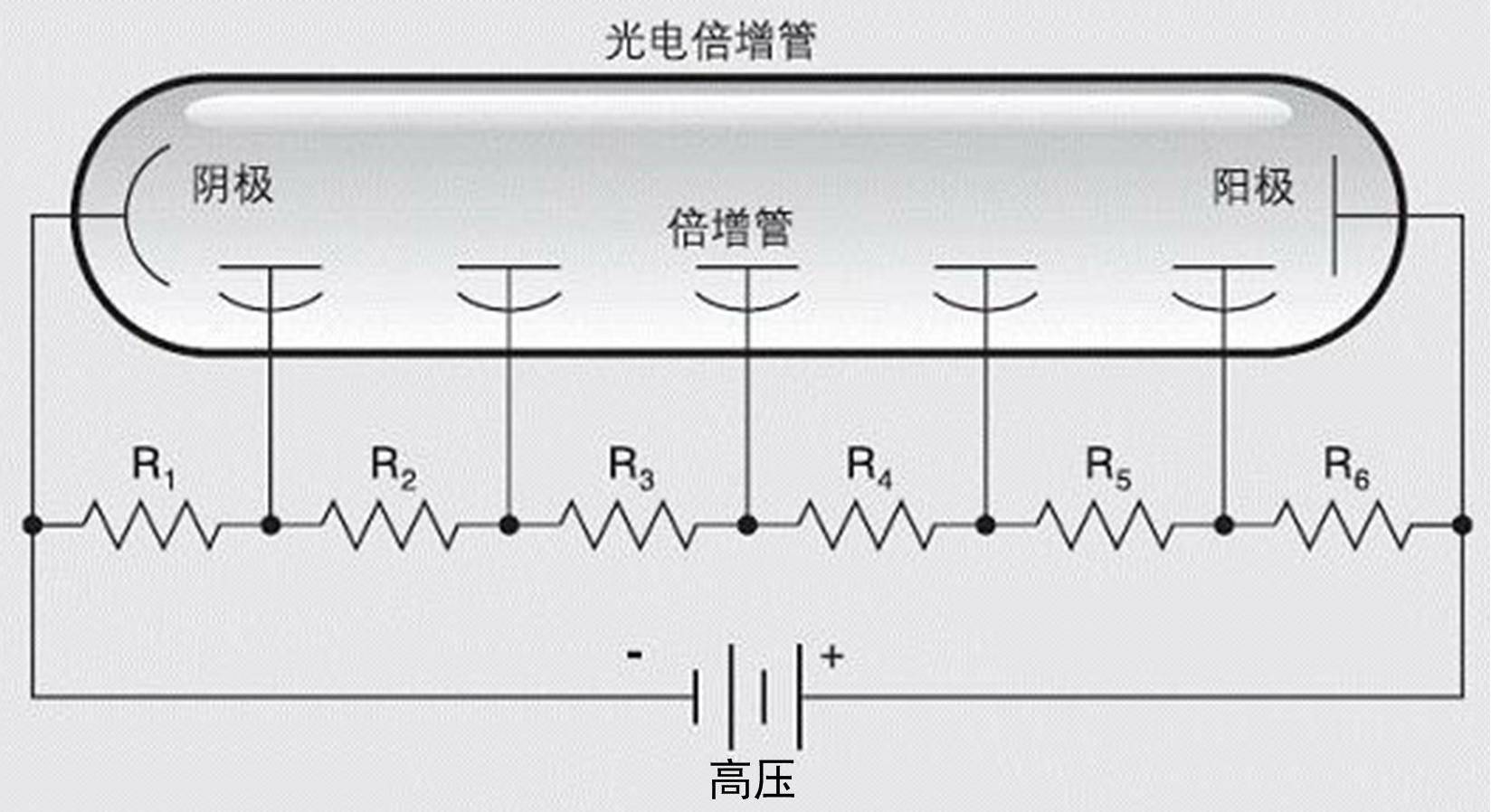 光電倍增管(Photomultiplier Tube,簡稱PMT)將光信號轉(zhuǎn)化為電信號,后續(xù)需要配合相應附件及電路,如管座、分壓器、高壓電源等,才能使電信號正常輸出并處理。