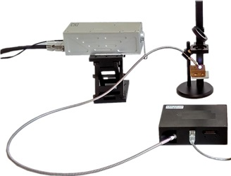 脈沖激光器、光纖光譜儀、聚焦透鏡、樣品、轉(zhuǎn)臺(tái)、耦合透鏡、光纖座、光纖。 |