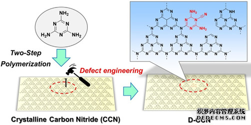 近年來,氮化碳晶體(CCN)基半導體在太陽能轉化領域吸引了研究者大的關注。然而,如果想進一步提高CCN的性能就需要在高結晶性和良好的光催化性能間做出平衡。本文中作者利用缺陷工程思想對CCN光催化劑進行了修飾設計。