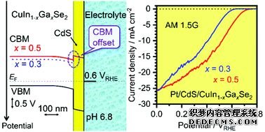 天津大學(xué)鞏金龍、王拓等通過在Cu( In, Ga) Se2上構(gòu)筑p-n結(jié),與BiVO4光陽組成的器件獲得了約1. 01 %的太陽能轉(zhuǎn)化效率;(DOI:10.1039/C7EE03650G)
