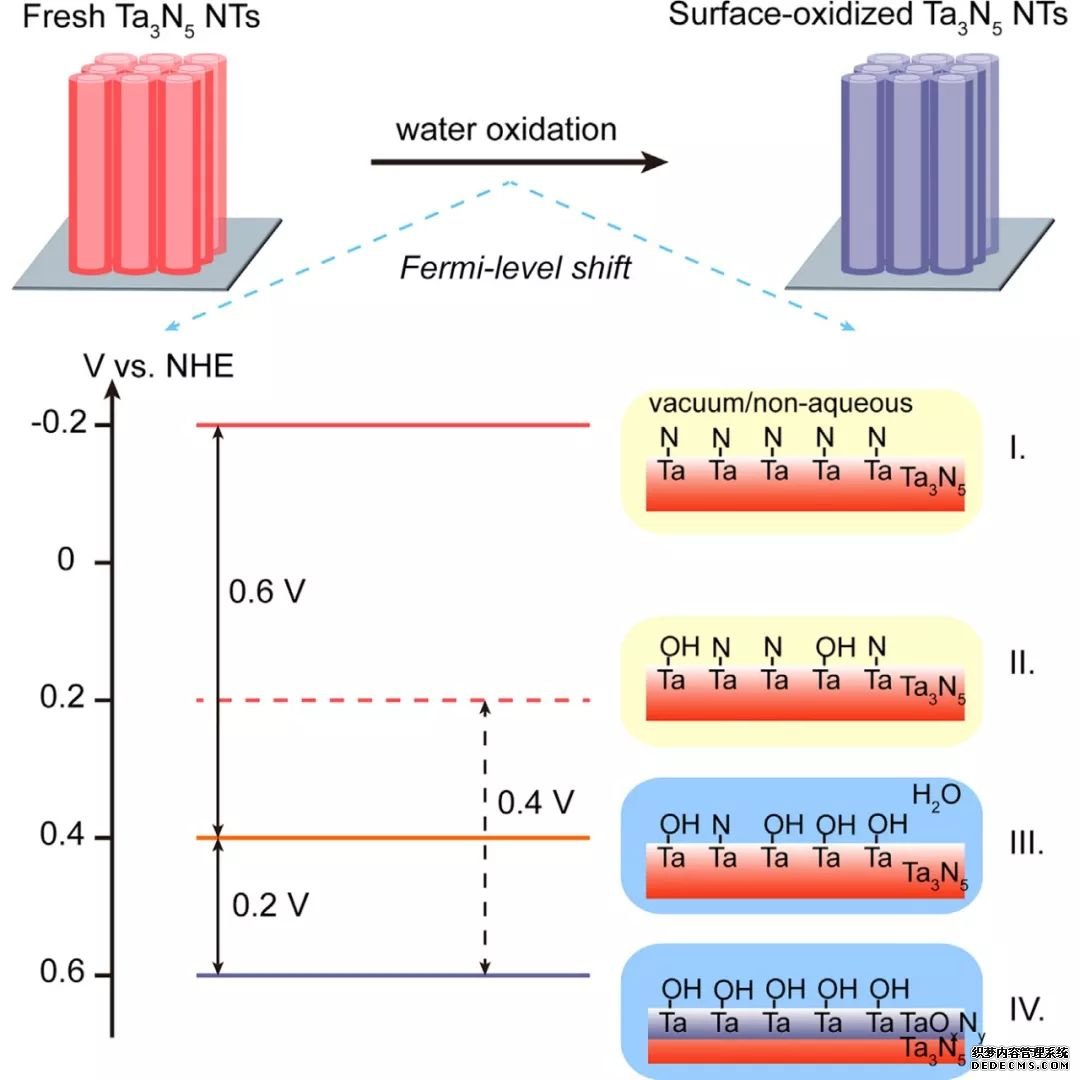 Dunwei Wang課題組在Chem發(fā)文,發(fā)現(xiàn)在光電化學(xué)分解水過程中,Ta3N5的表面會自氧化生成一層非 晶的富氧層,導(dǎo)致費米能級下降,終導(dǎo)致其性能衰減。 因此,對Ta3N5的表面進行鈍化處理,不僅能提高性能,對其長期穩(wěn)定性的提高也十分重要。